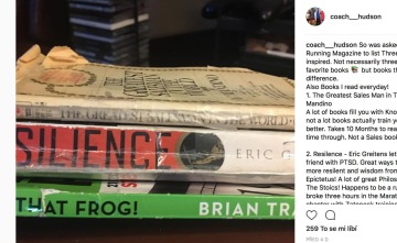 Americký trenér a náruživý čtenář Brad Hudson, autor knihy Run Faster, na naši žádost vybral tři knihy, které jej inspirují. Nikoli nutně knihy nejoblíbenější, ale knihy, které vás změní, knihy, které čte každý den. Svůj výběr zveřejnil na Instagramu. Všechny tři knihy jsou dostupné i v češtině, rozhodli jsme se tedy připravit také českou verzi jeho příspěvku.